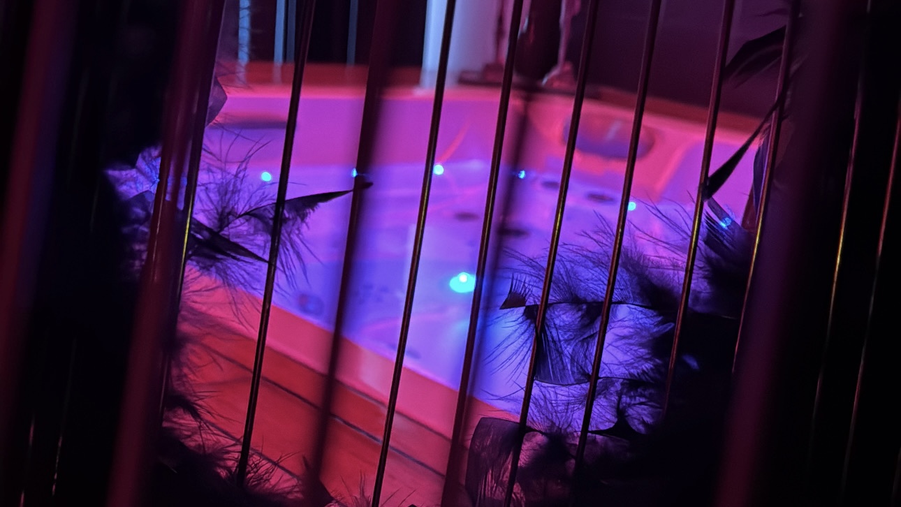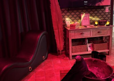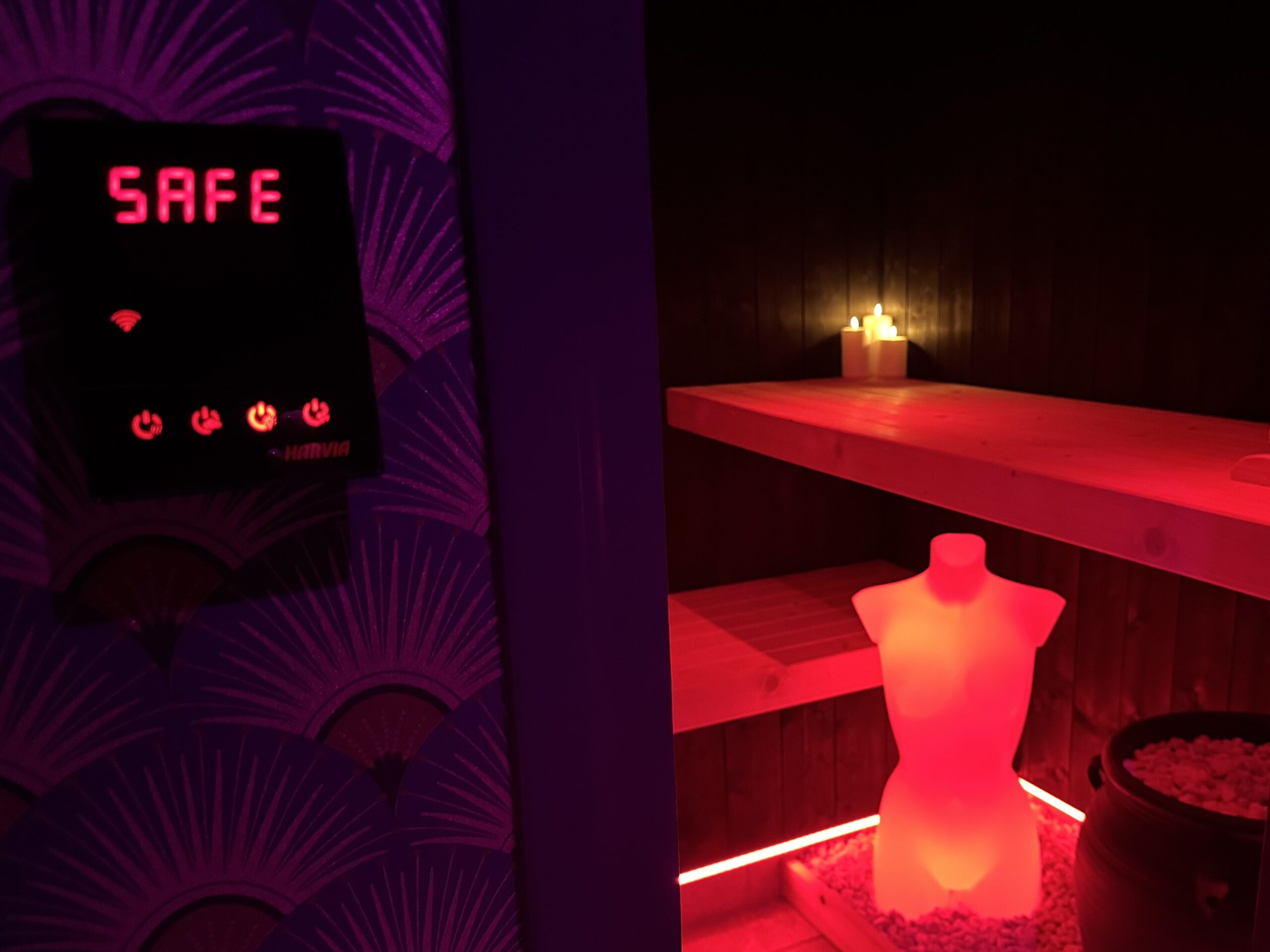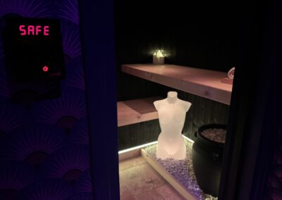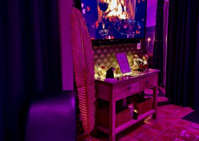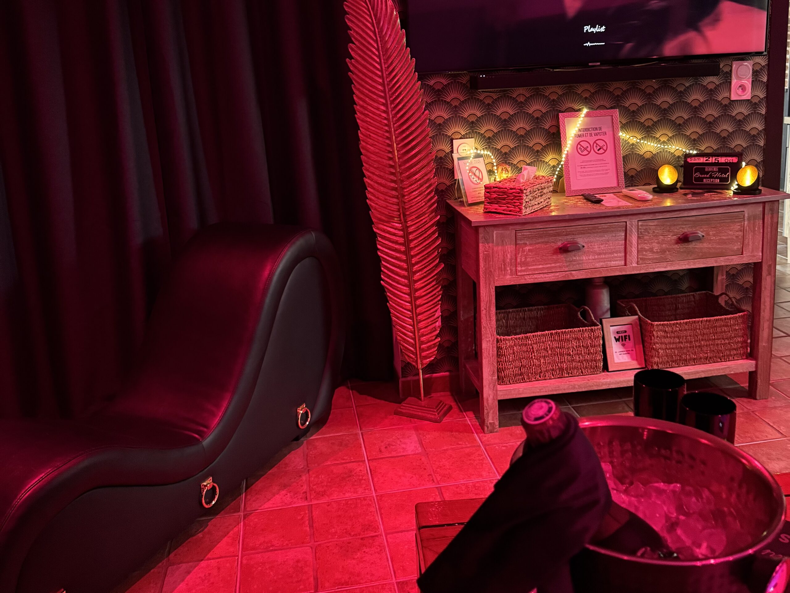 Au premier niveau de cette suite, vous découvrirez une chambre comprenant un lit Queen Size, un jacuzzi 5 places dont 2 couchettes, un sauna pierres chaudes avec 2 couchettes, un grand écran et une salle d’eau attenante. Peignoirs, et nécessaire de toilette sont mis à votre disposition. Vous pourrez profiter d’un jeu de lumière pour créer l’ambiance de votre choix. Pour les plus romantiques, des bougies sont également disponibles, ainsi qu’un sofa tantra pour vos jeux coquins ainsi que 2 box tantra et sensuel à 49€ chacune pour pigmenter vôtre soirée !