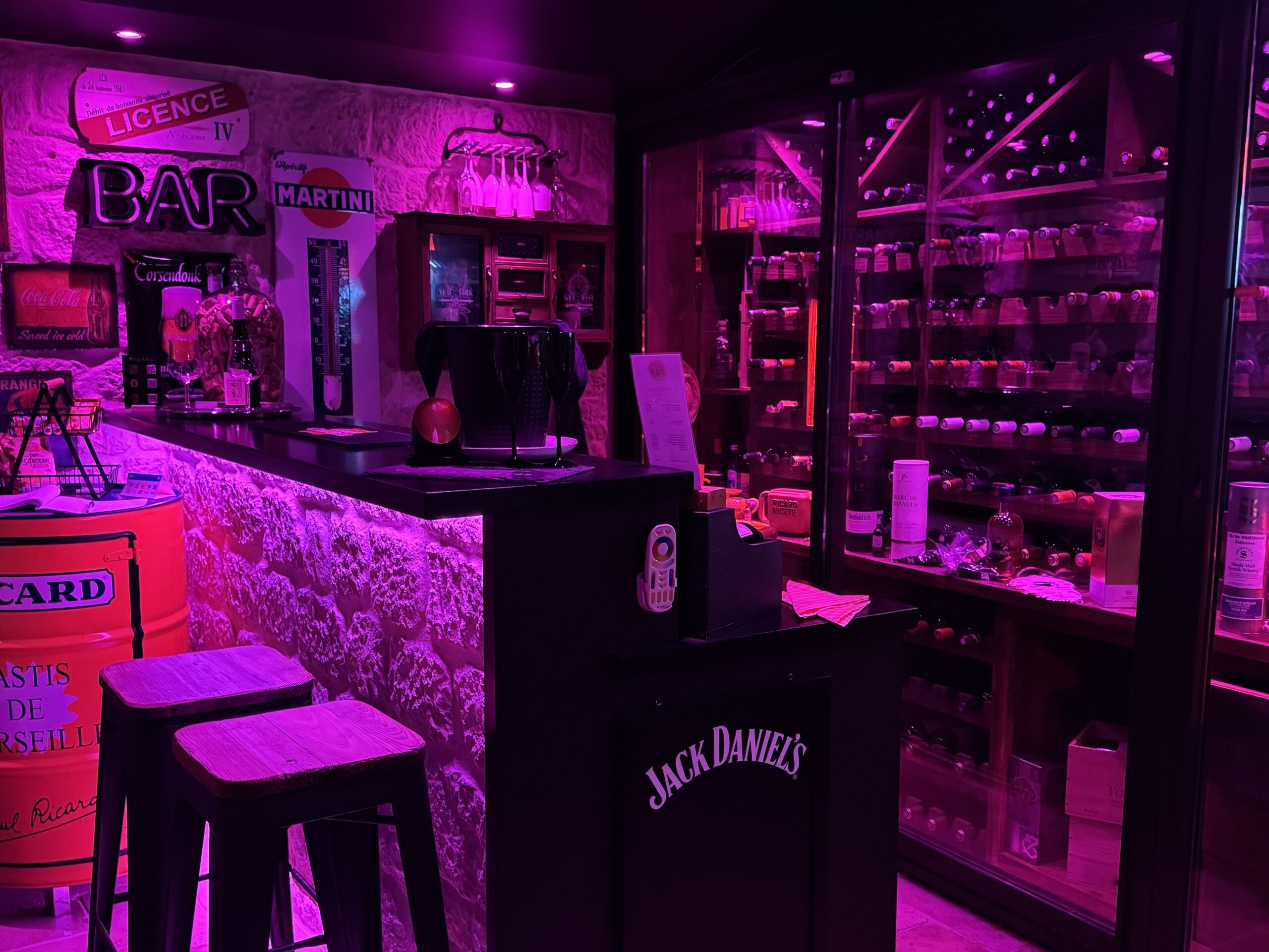 Au deuxième niveau, vous découvrirez un salon doté d’une décoration soignée où se mêle la pierre, le bois et le métal, avec une cave à vin apparente exclusivement réservée au plaisir des yeux. Vous aurez à votre disposition un coin salon TV , un coin repas, un petit frigo TOP, un micro-ondes et une cafetière (café, chocolat, thé et bouteilles d’eau offerts).