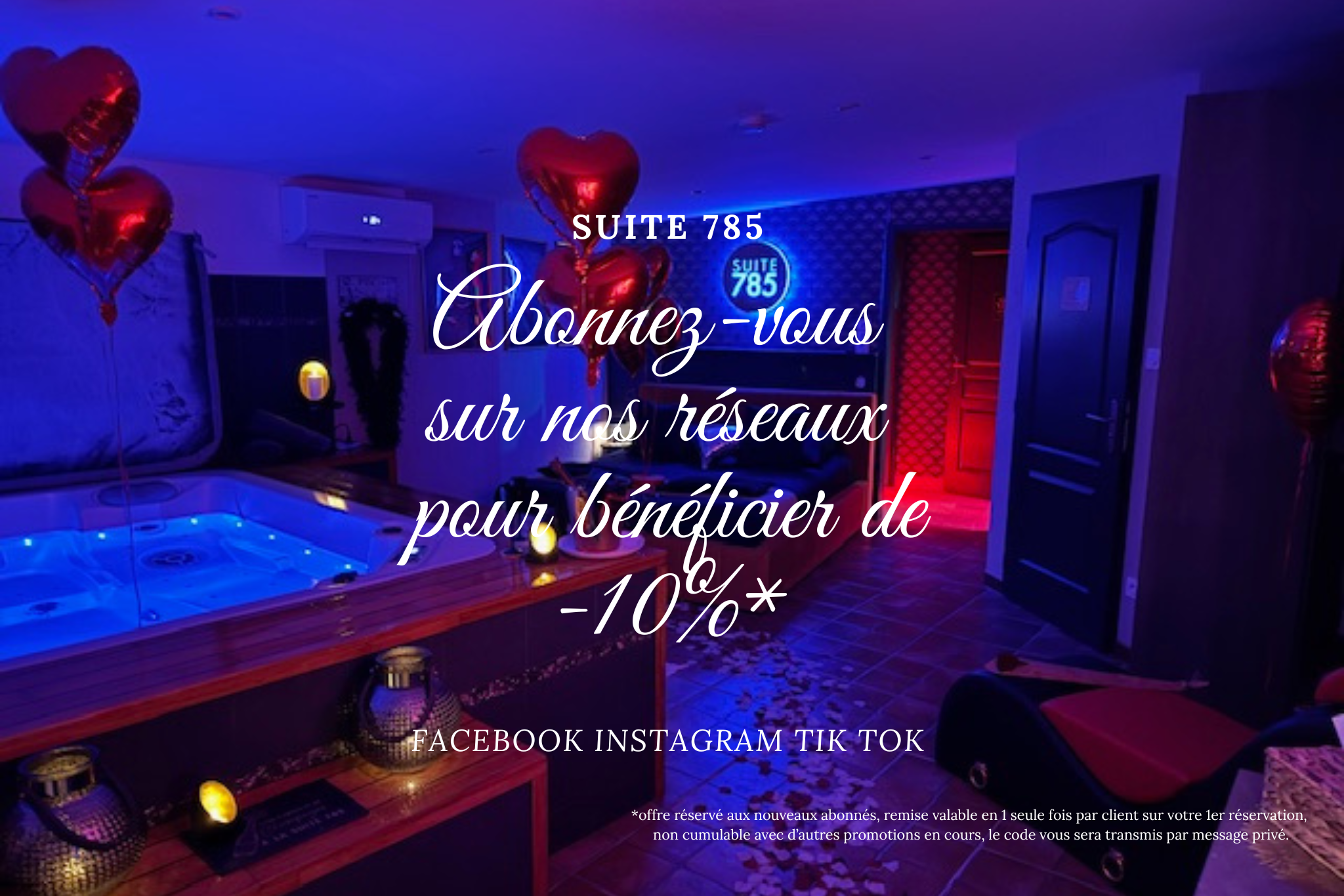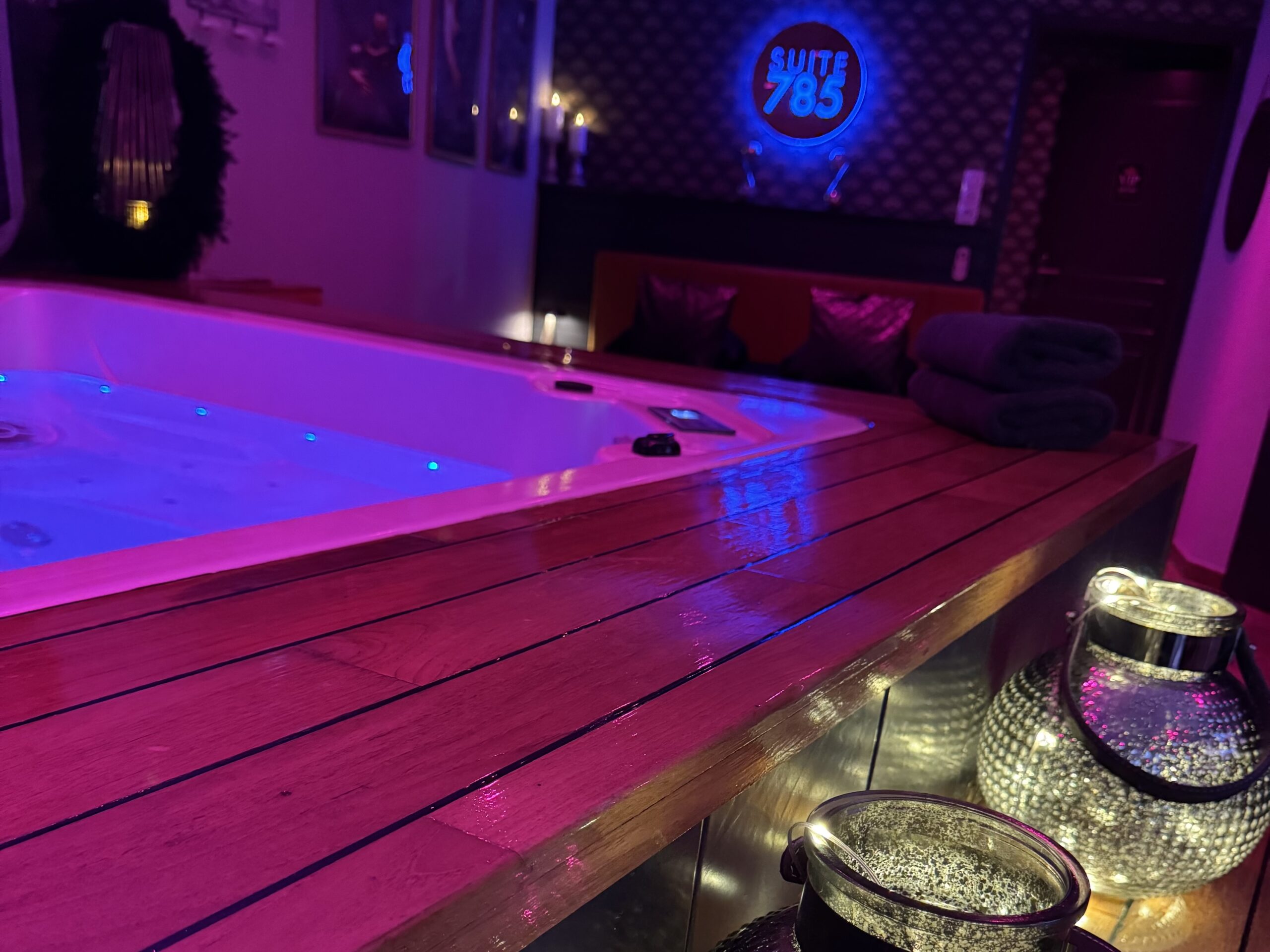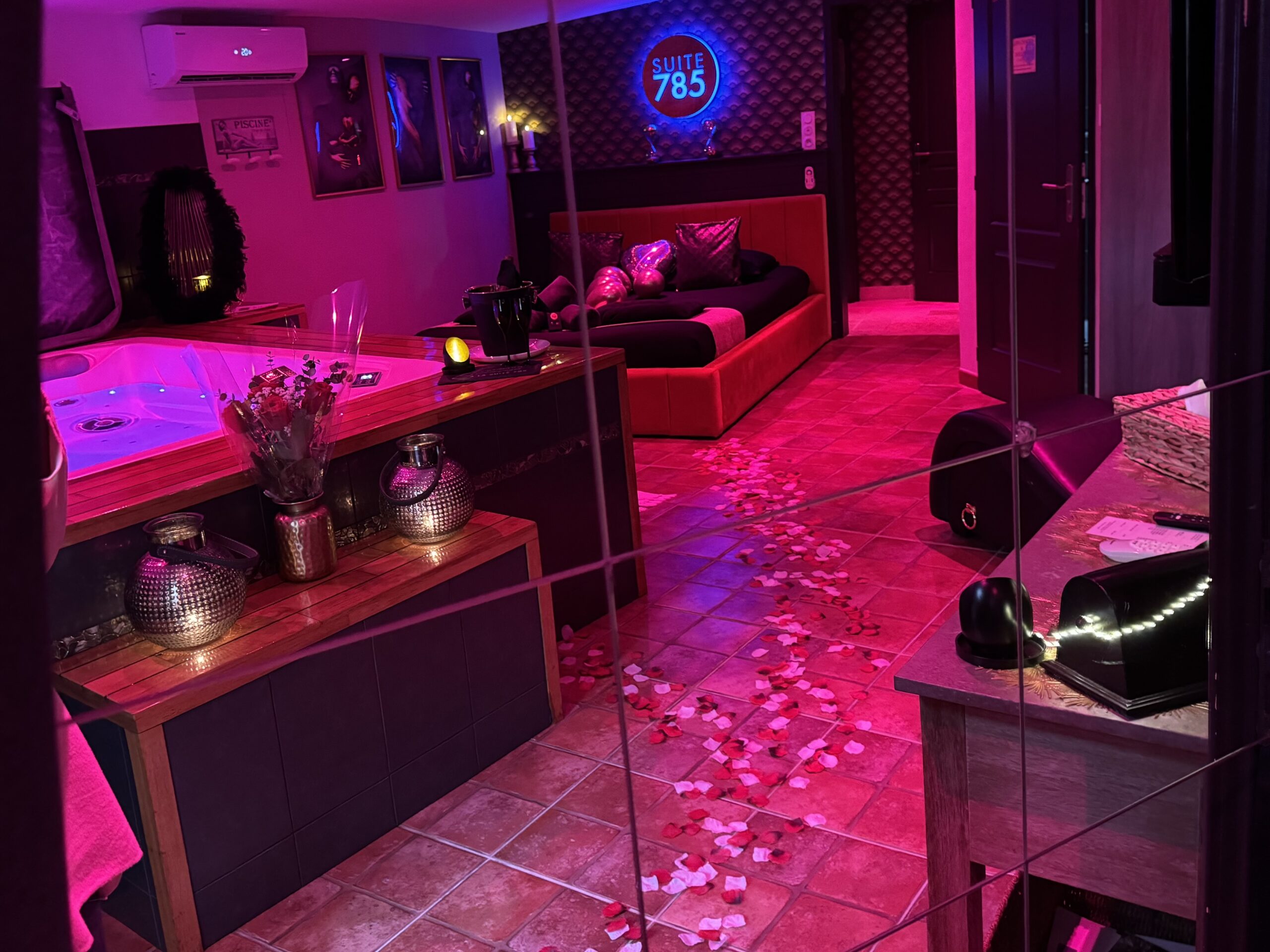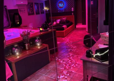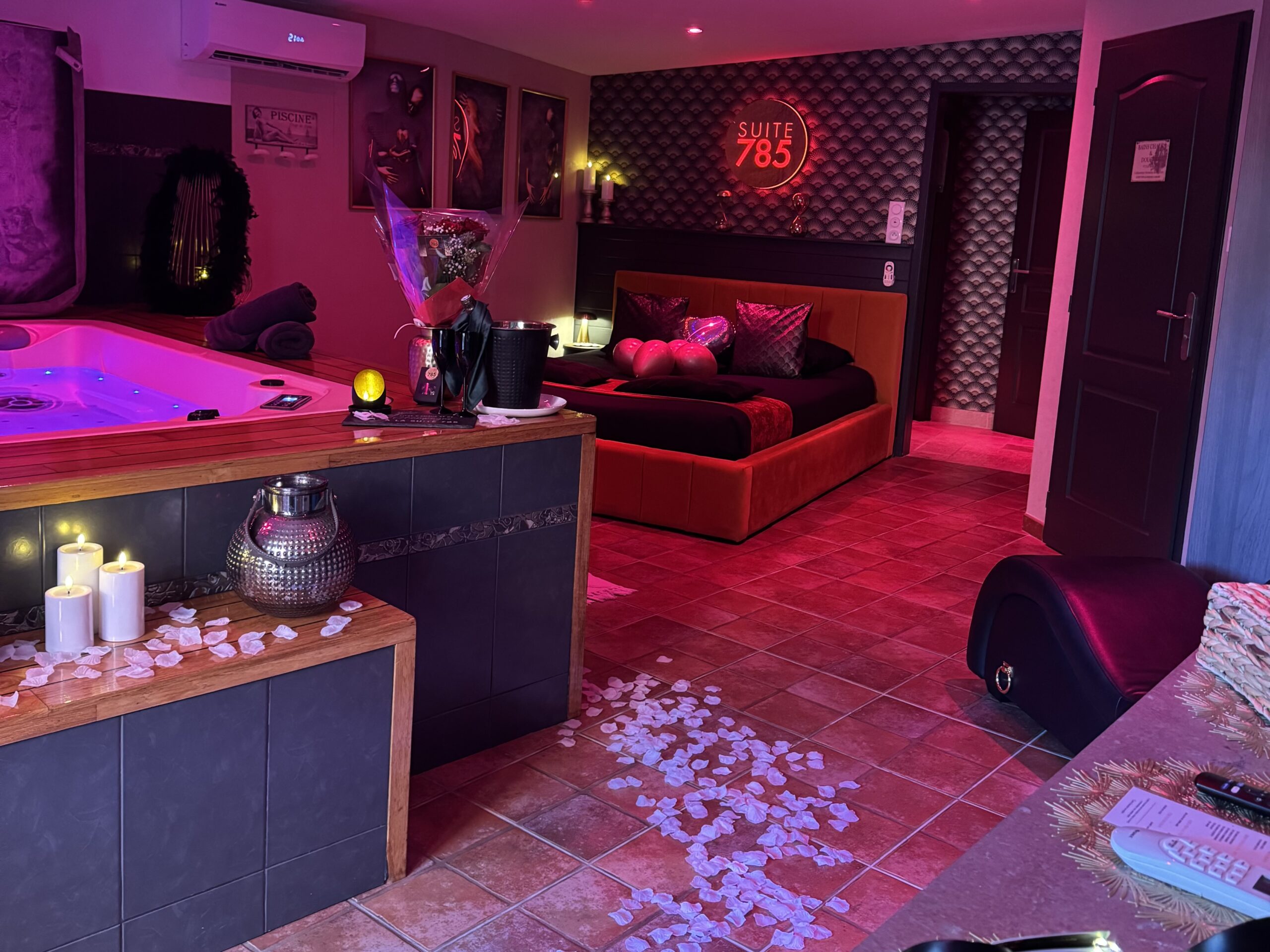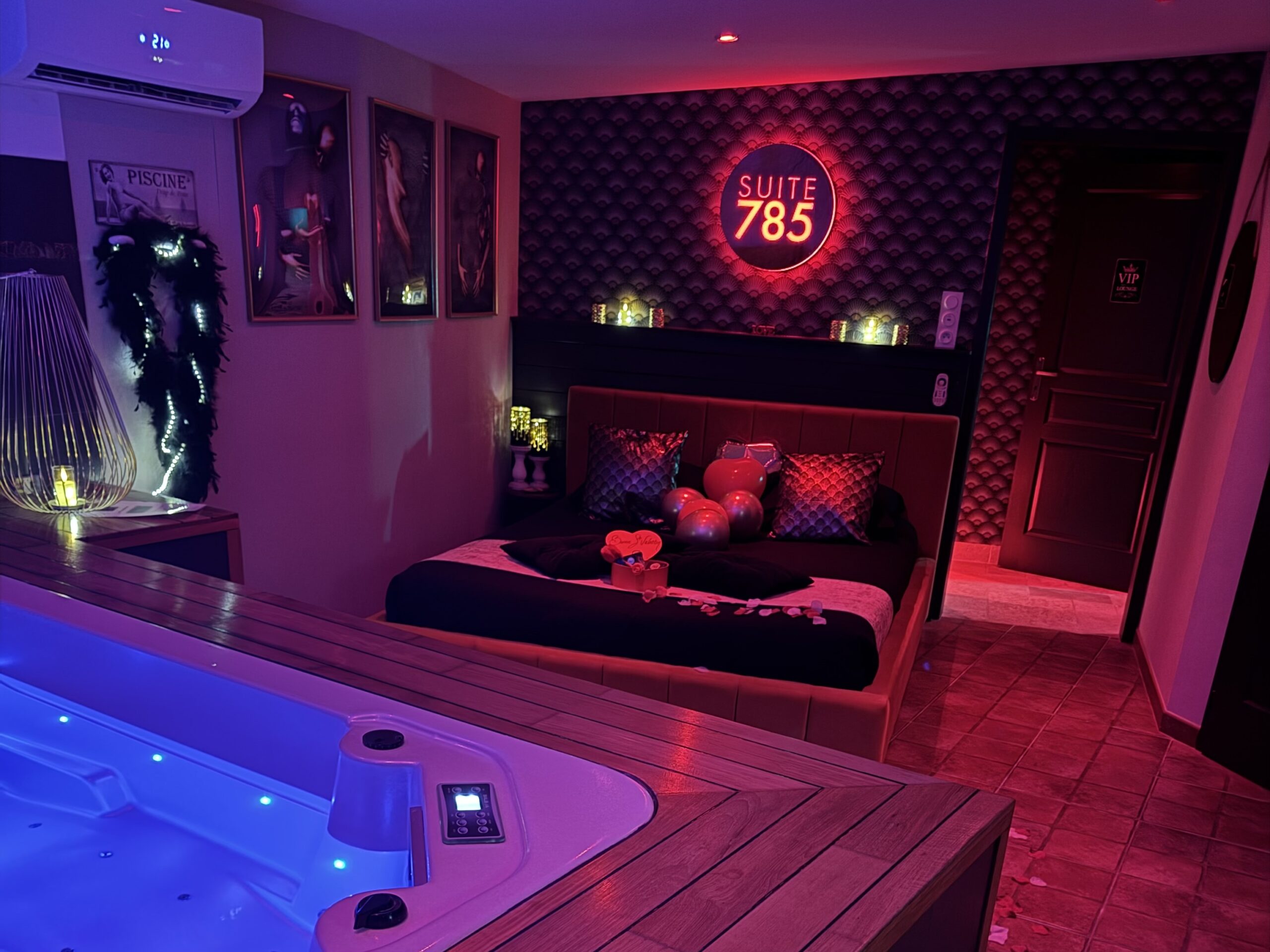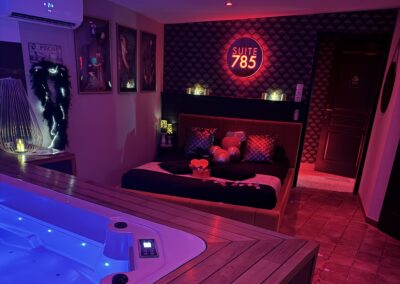 La Suite 785 est une chambre d’hôte sur 2 niveaux (escaliers) pouvant accueillir 2 personnes maximun . Elle dispose d’un Espace SPA Jacuzzi et Sauna, d’un Espace Lounge Cave et d’un espace jardin cozy extérieur, le tout indépendant et privatif.