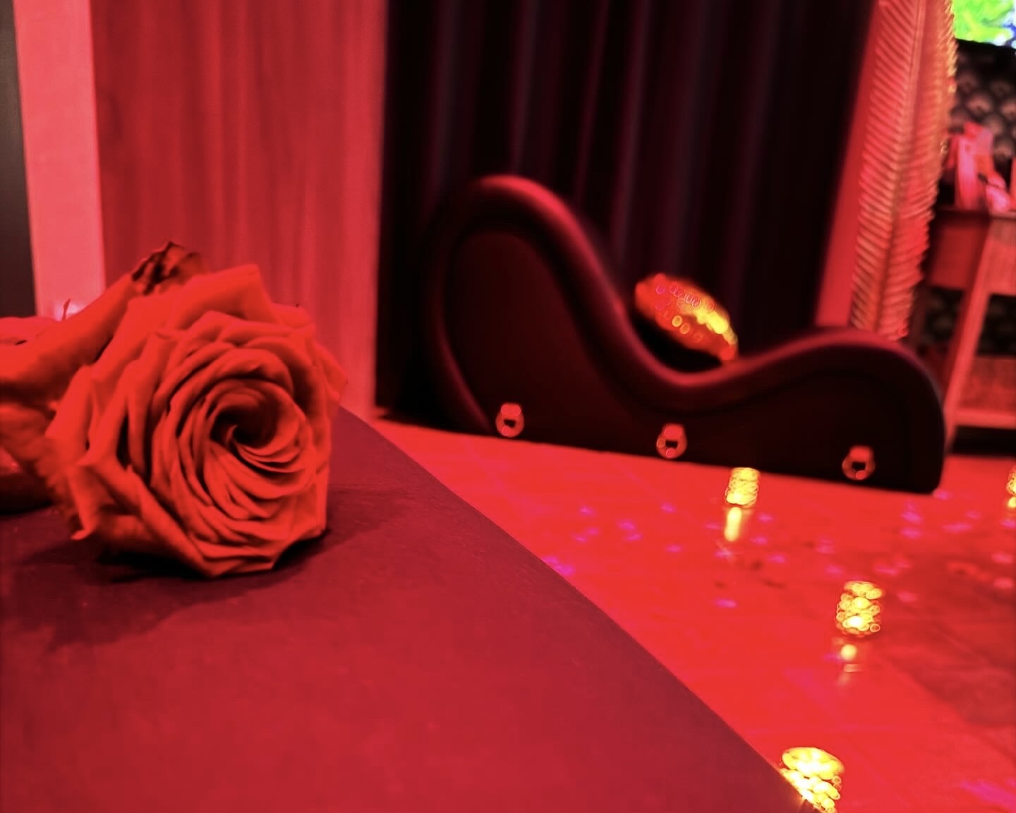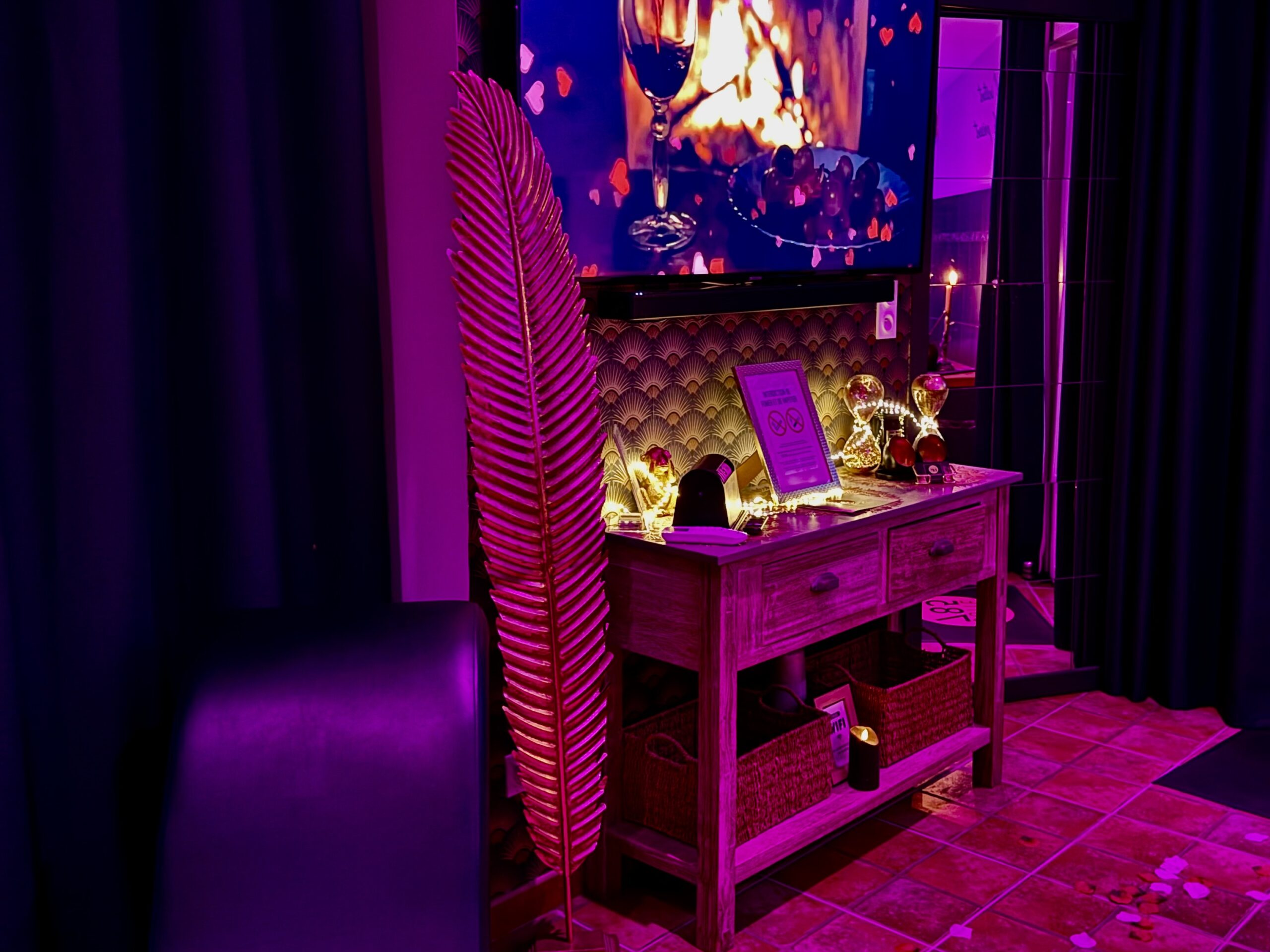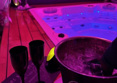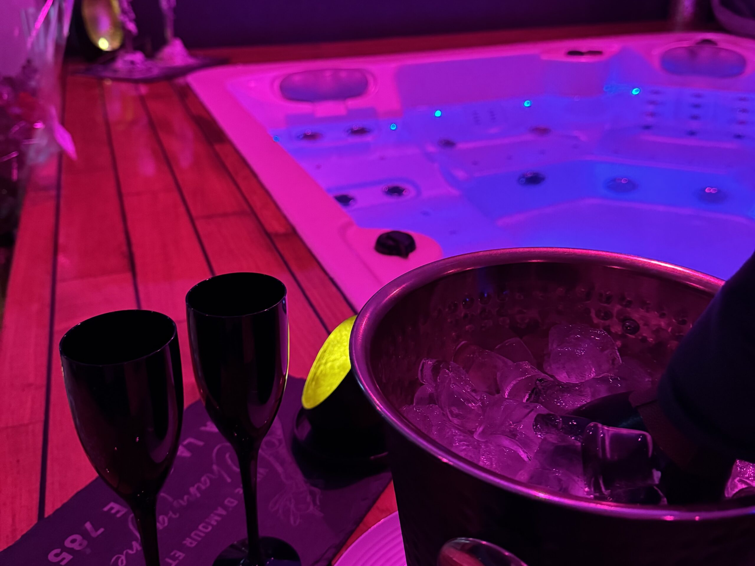 - décoration AMOUR ABSOLU : pétales de rose au sol, bougies, ballons, bouquets de 5 roses et une bouteille de champagne 80€ AMBIANCE ROMANTIQUE